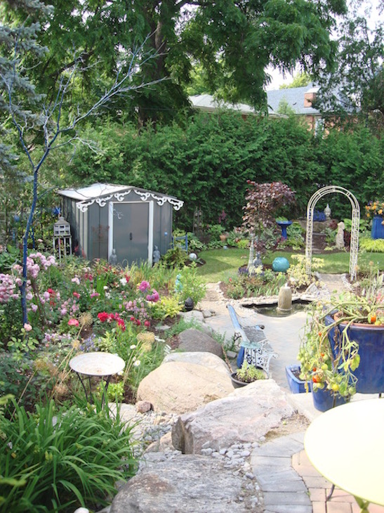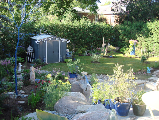 And two years later, it changes again and now I have a record of what worked and what didn't. For example, the Dogwood in front of the statue died under the shadow of the Black Walnut behind it. So did the Dappled Willow just to the right of the statue's shoulder.
