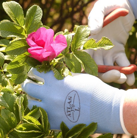 I still hate getting dirt under my nails...So each Spring I treat myself to a few pairs of gloves in delicious colours, like lavender, blue or peach. With rubber-like palms and fingers and a nice cool mesh on the upper...they are thin enough to pick up a tiny seedling, or protect me from sharp thorns.