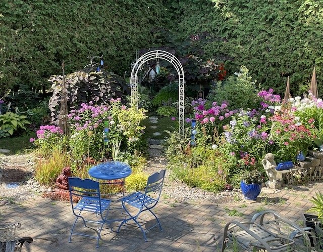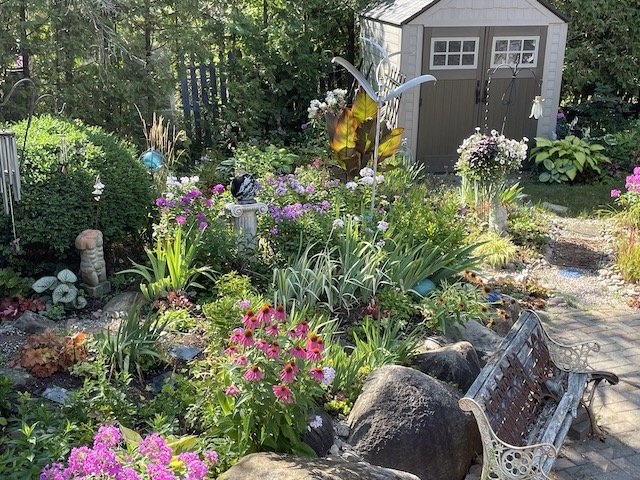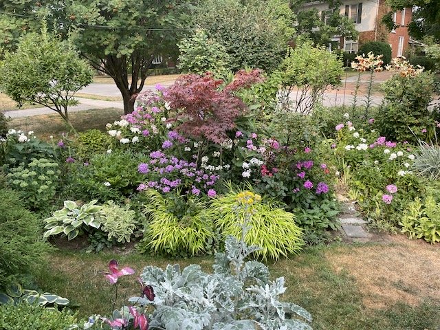 Phlox in the back garden. August Chores We can do...MINIMAL WEEDING Edge the beds with a knife …. take out the weeds in the first 6 to 8 inches… and a little miracle happens.... that bed goes from messy to intentional… When the soil is very dry, weeding the whole bed can be difficult, so do what shows and leave the rest till the soil is viable again.