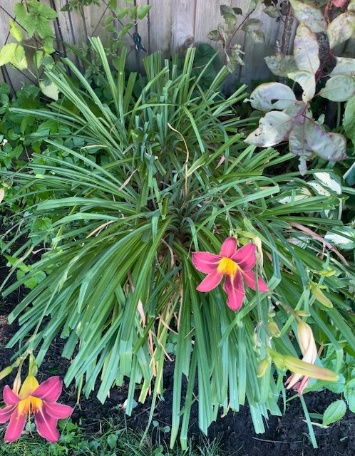 The Peterborough Lily Lilies begin to look a little ragged this time of year and their fronds often are so long they lean out onto the grass and get cut by the lawn mower, or shadow other nearby plants... Here is what I do. .. .take a handful of leaves and cut them on an angle... tidies the plant and the taller leaves that tend to flop over, stand up... Better still, you will see new little stems with buds down below, waiting for their turn to shine.