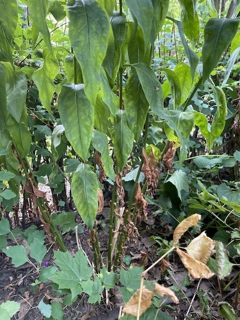 You may not be able to weed the entire bed, but edging it does two things: 1. leaves bare soil to hold water for plants as they reach for moisture 2. makes the bed look tidy and intentional As an extra measure, water the edge and apply mulch to hold more water. Damaged Hosta Leaves...Some lighter leaved Hostas don't mind the sun, but scorching heat as we have had in S. Ontario has been brutal. Cut the damaged ones back and see the new leaves waiting beneath...
