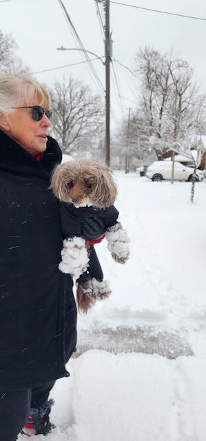 However, Lucy seems to have collected more than her share of snowflakes A whole new meaning to “snow boots”