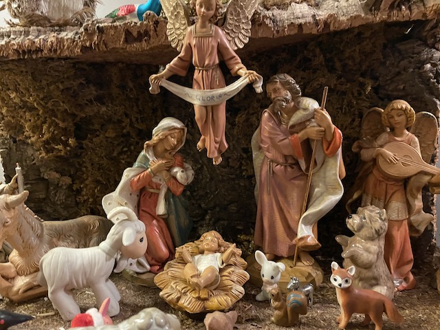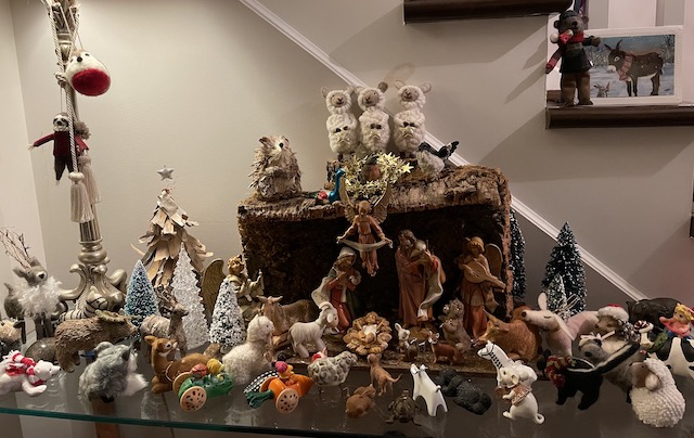 Our original Nativity purchased from a wee shop on a side street in Rome many decades ago. Each year we add another.. or more ... animals or figures because we know that ALL are welcome..