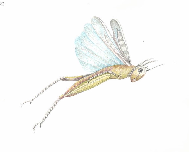 leaf sketch- Cauleen Viscoff Nesting Bees...Leaving spent stems of perennials is a good thing, right?Well, not all stems are best for nesting bees. For example, Joe Pye Weed is too wide ...but Goldenrod and Monarda are narrower and just right. Other cavity-nest makers prefer dead wood, or holes already made by other insects… so leave stems, cutting them back at random heights. credit: Heather Holm pollinators of native plants Cut stems in varying lengths and leave standing. Take any extras and place in pot, leaving it on its side for a wee insect hotel. credit: Heather Holm pollinators of native plants Leave your leaf litter on beds for bees and other insects to overwinter…. if you don’t have any, your neighbours will….We don't have any sugar maple trees so we help our neighbours rake theirs and bring them to our flower beds. Beauty and Beasts...Of course, wherever there is beauty, there are beasts or all types. Grasshoppers, crickets, cicadas, beetles and butterflies - the good, the bad and the downright adorably ugly. Flying Grasshopper Sketch-Cauleen Viscoff ...it’s really about something called Mutualism… where one species gets, gives and/or receives from another, ensuring or sharing survival of yet another. It’s more complicated than that but here it is in a nutshell: The GRASSHOPPER benefits humans and the ecosystem by helping plant decomposition and regrowth, creating a balance between types of plants that thrive. CRICKETS are scavengers and not picky eaters who eat plant and animal matter even if rotting or decaying . CICADAS will actually prune out weak branches of a tree where they lay eggs, making that branch wither and die - trees save energy by not dealing with a weak branch. When the Cicadas die, their bodies decay and release nutrients into the soil around the tree. BEETLES feed on and break down, dead or decaying animals, leaf litter and even some crop pests BUTTERFLIES pollinate plants that produce crops ensuring diversity of native plants So, squish the really annoying ones if you must - but leave the rest to do their jobs and help to keep that circle going.. Planting Bulbs...