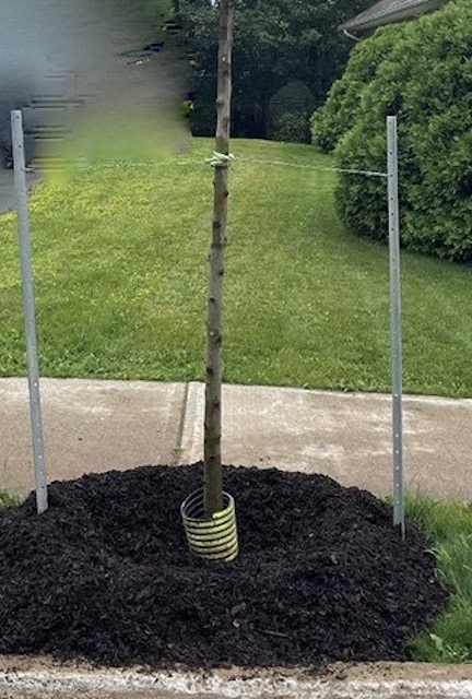 See more at the link below. Tulip bulb sketch - Cauleen Viscoff Fall Tree Care...Fall is a great time to plant trees and shrubs, but there are other things you should know in taking care of the trees you have. Dr. Bonnie Lee Appleton , a professor of horticulture at Virginia Tech University in Blacksburg says there are 4 things that need to “fall” under tree and shrub care…things to “un-do” .. she calls it “un-planting”… 1 - Un-stake (untie) 2 - Un-wrap 3 - Un-mulch 4 - Un-bind UN-STAKE A newly planted tree only needs to be staked if it cannot stand upright by itself (or needs protection from wind or people. If it needs staking, a year is plenty. if its roots cannot hold it up after a year, there may be another problem - poor soil or poor roots: staking will not fix this. Planted without stakes, trees develop trunk girth faster and stronger and able to stand up straight when buffeted by wind… even staked trees should never be held rigidly in place. UN-TIE trees so the tying material does not damage the bark (it restricts water and nutrients moving up the trunk), declining growth and creating a possible soft or weak spot that could later break. Remove labels or tags that can be absorbed by growth. UN-WRAP Take off any protection from the trunk when planted. This is unnecessary except in striations like protecting it at digging or shipping time and sometimes used for heat protection if trees are planted in paved areas. The wrap can also rot the bark, and cause trunk’s breathing pores to enlarge making entrances for insect and disease problems. Sometimes a trunk needs protection from machinery, animal feeding or vandalism with a metal or plastic guard which should be loose: not touching the bark. UN-MULCH Pull back the mulch about 4 inches away from the trunk as it can promote bark decay, disease or insect issues. More than 3 or 4 inches deep of mulch can make a cozy home for voles or other critters to munch on the softened bark. The root flare should be at the soil’s surface… if not, pull away the soil to reveal it. UN-BIND All root balling materials like natural or synthetic burlap, hemp or synthetic ropes, as much of the wire baskets as possible, plastic sleeves or pots. They restrict root growth and development. Even those so-called ‘plantable’ pots will not biodegrade fast enough and their fibres soak up the moisture before it gets to the roots. May not be a "Mast" year for nuts...