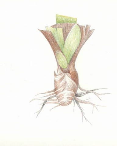 TUBERS: - are thick underground, elongated stems: lilies -some have little eyes that sprout: potatoes - or lumpy with eyes and knobs: ginger and root artichokes - left - lilies - middle - Jerusalem or root Artichokes and Ginger - right - potato