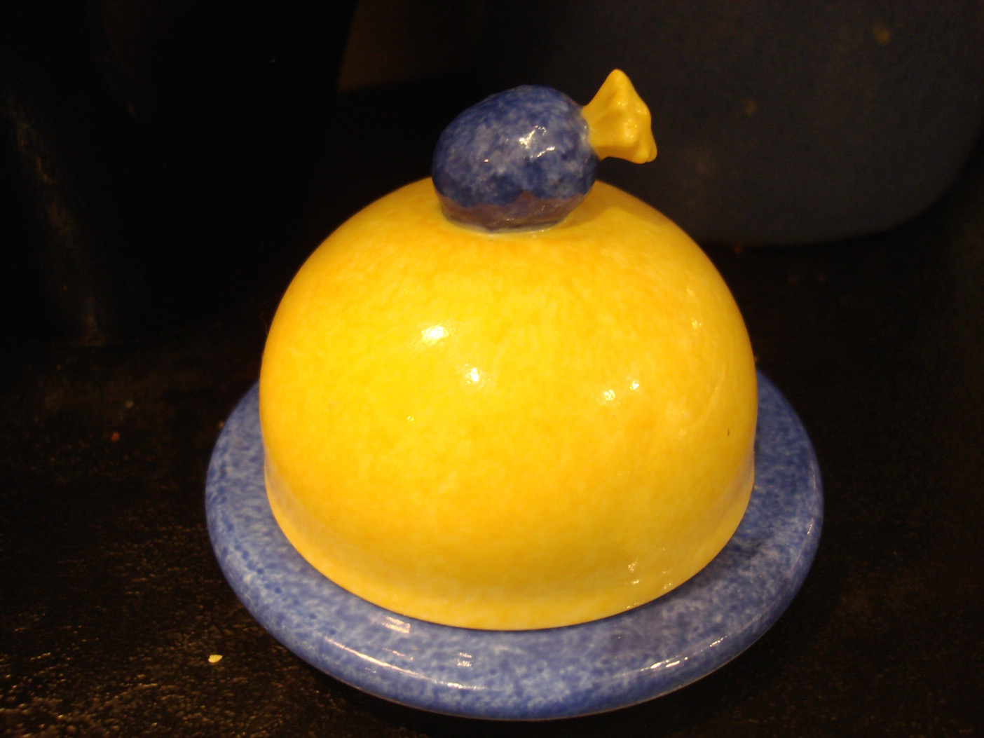 I changed my little white butter dish for this one, found in a wee shop in Paris some years ago, and hiding in the back of the cupboard, waiting to add more sunshine.
