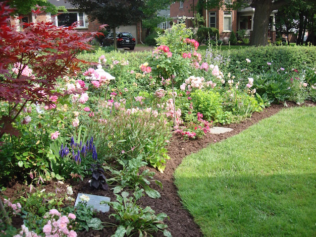 ..and Mulch with shredded bark like Hemlock, which decomposes, adding nutrients while keeping soil moist, neat and mostly weed-free. Weeds coming through are easy to pull. Cuts down on watering.